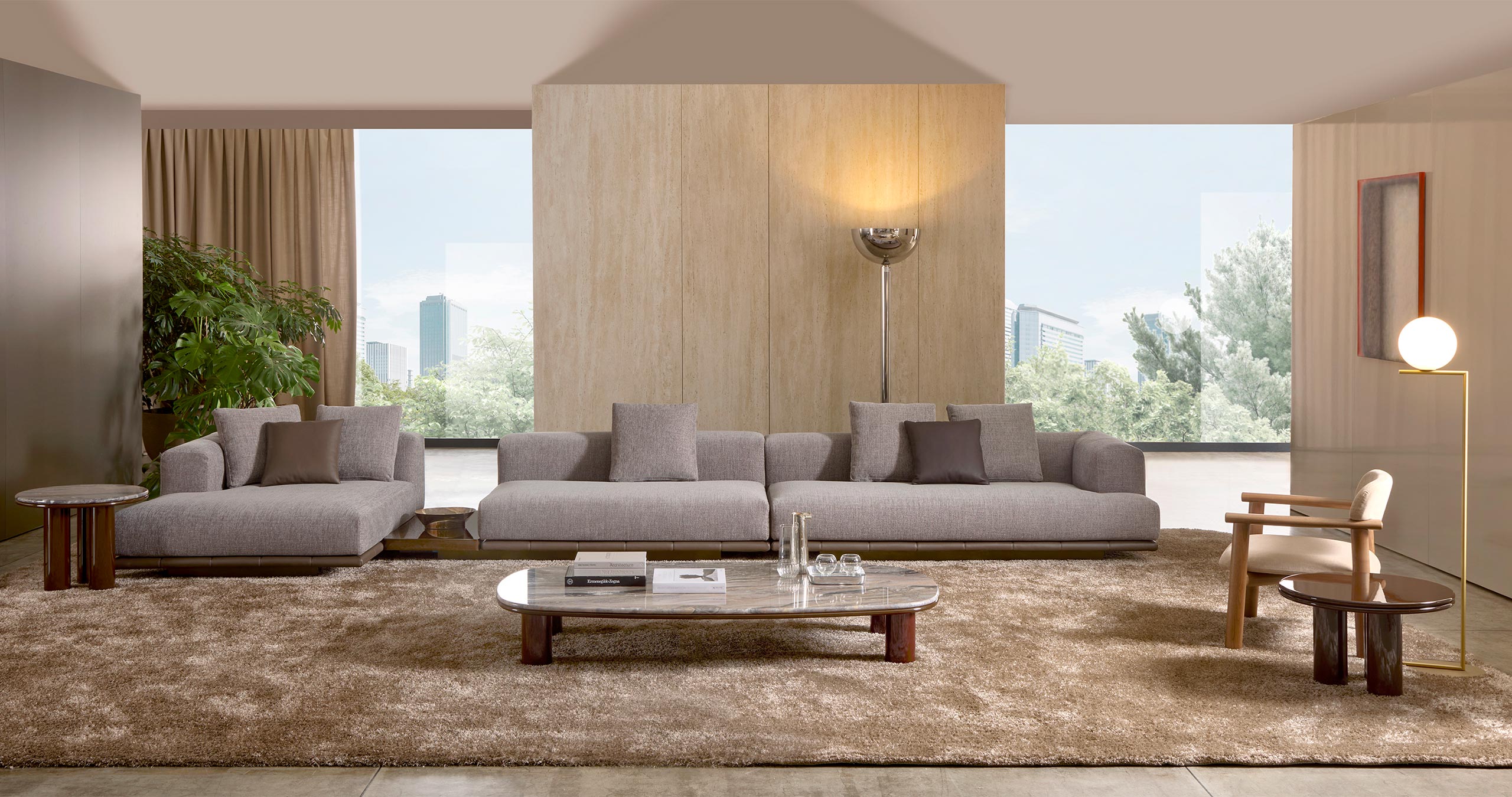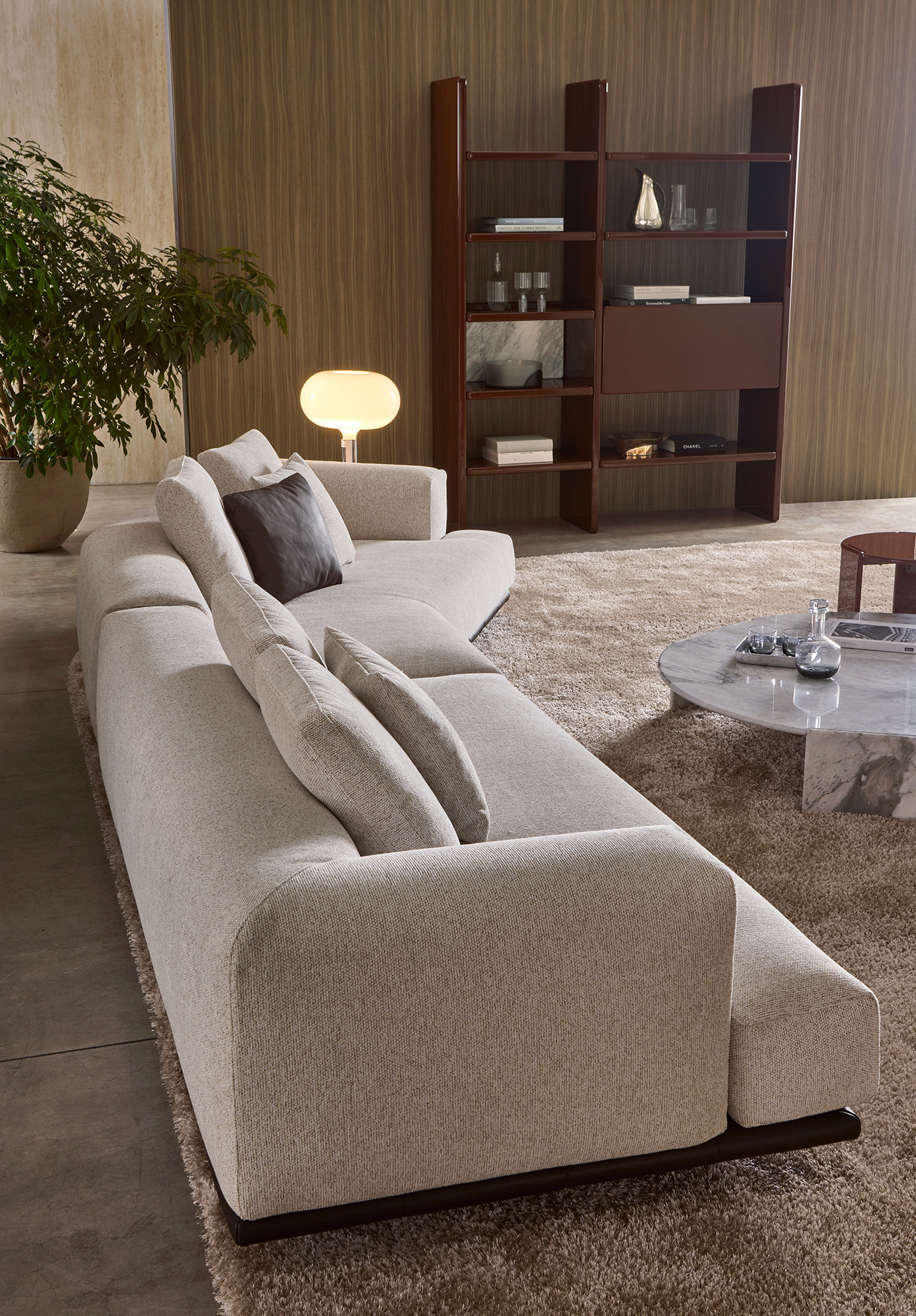 Jonah è un divano componibile caratterizzato da volumi bassi e accoglienti, progettato per offrire il massimo comfort senza rinunciare a un’estetica sofisticata.