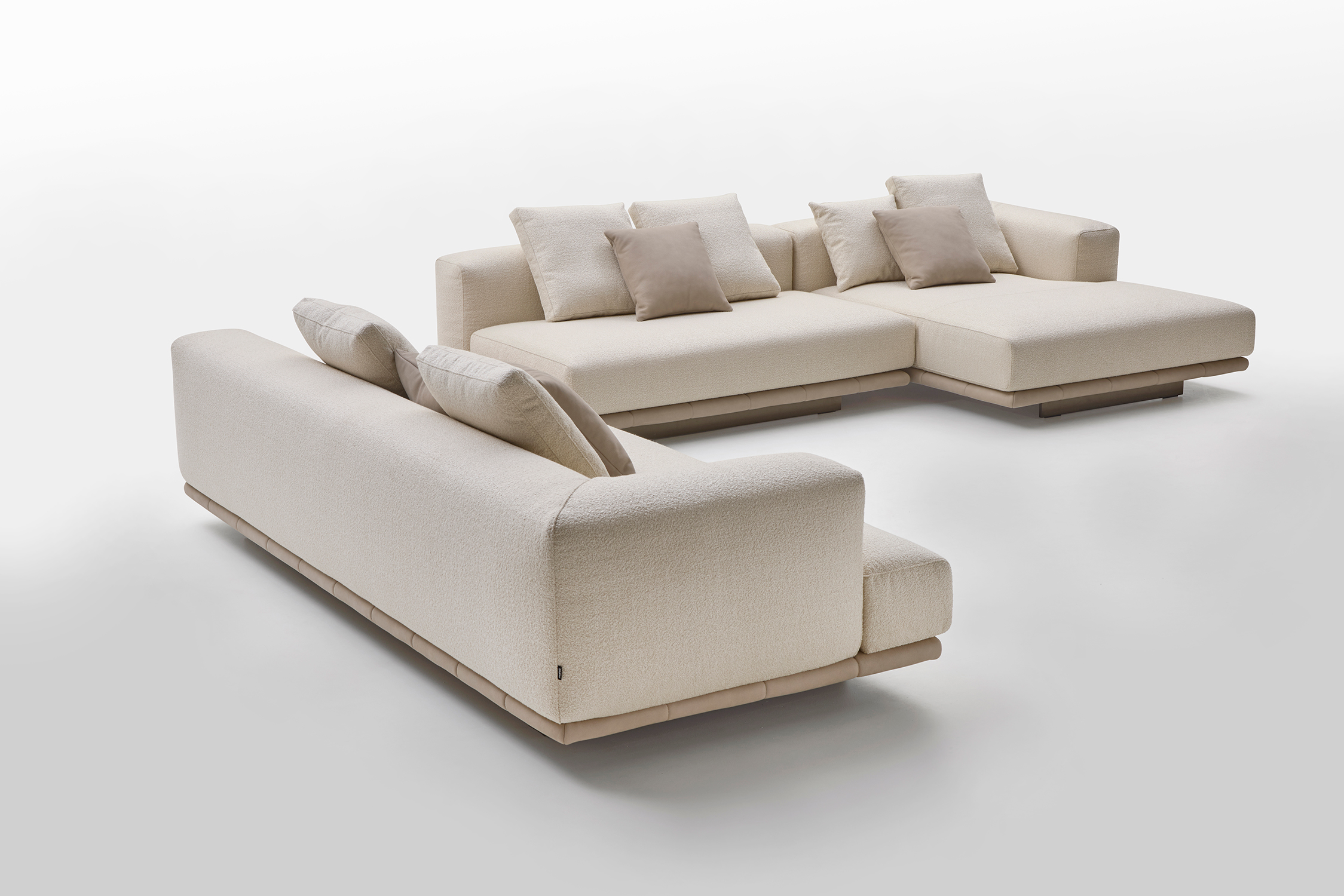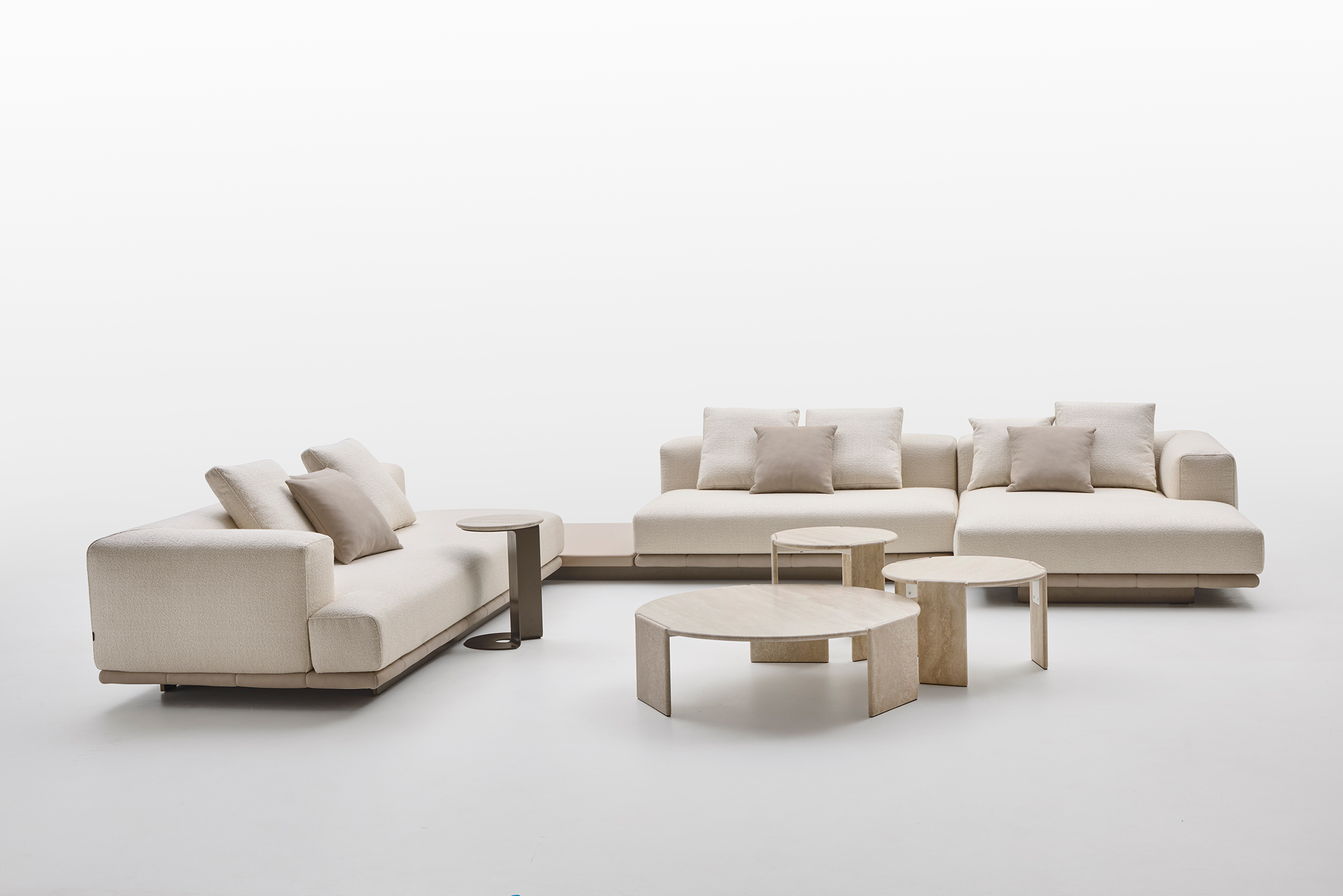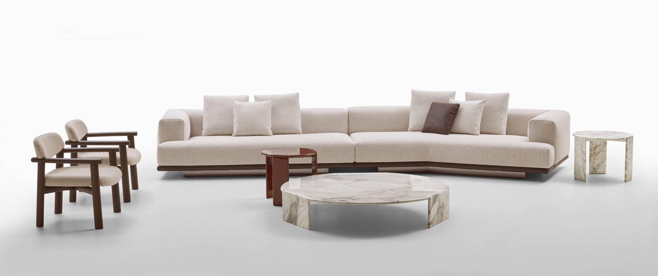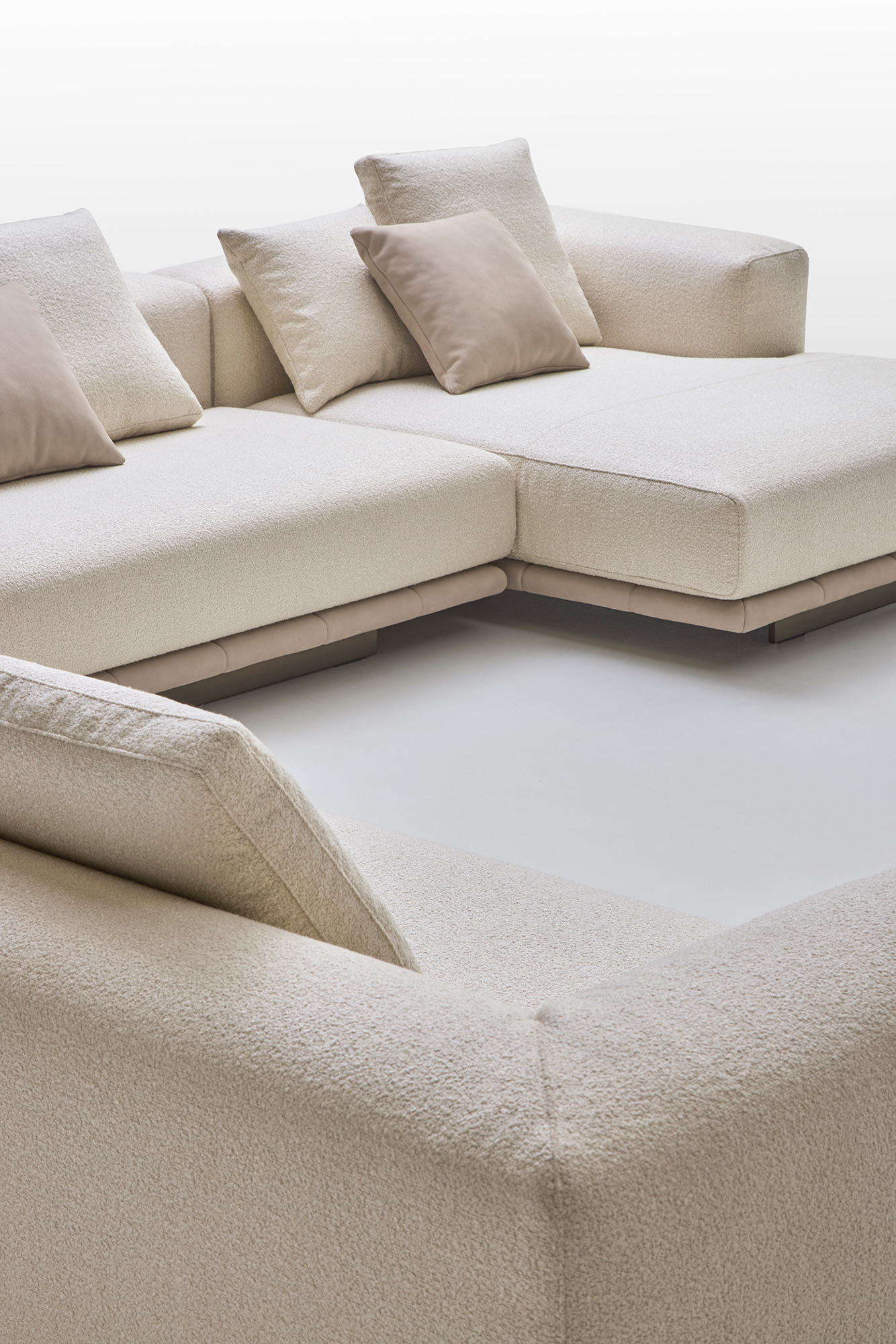 Grazie alla modularità degli elementi, Jonah consente di creare configurazioni personalizzate: composizioni lineari, angolari o a isola, adattandosi con naturalezza a diversi contesti abitativi.