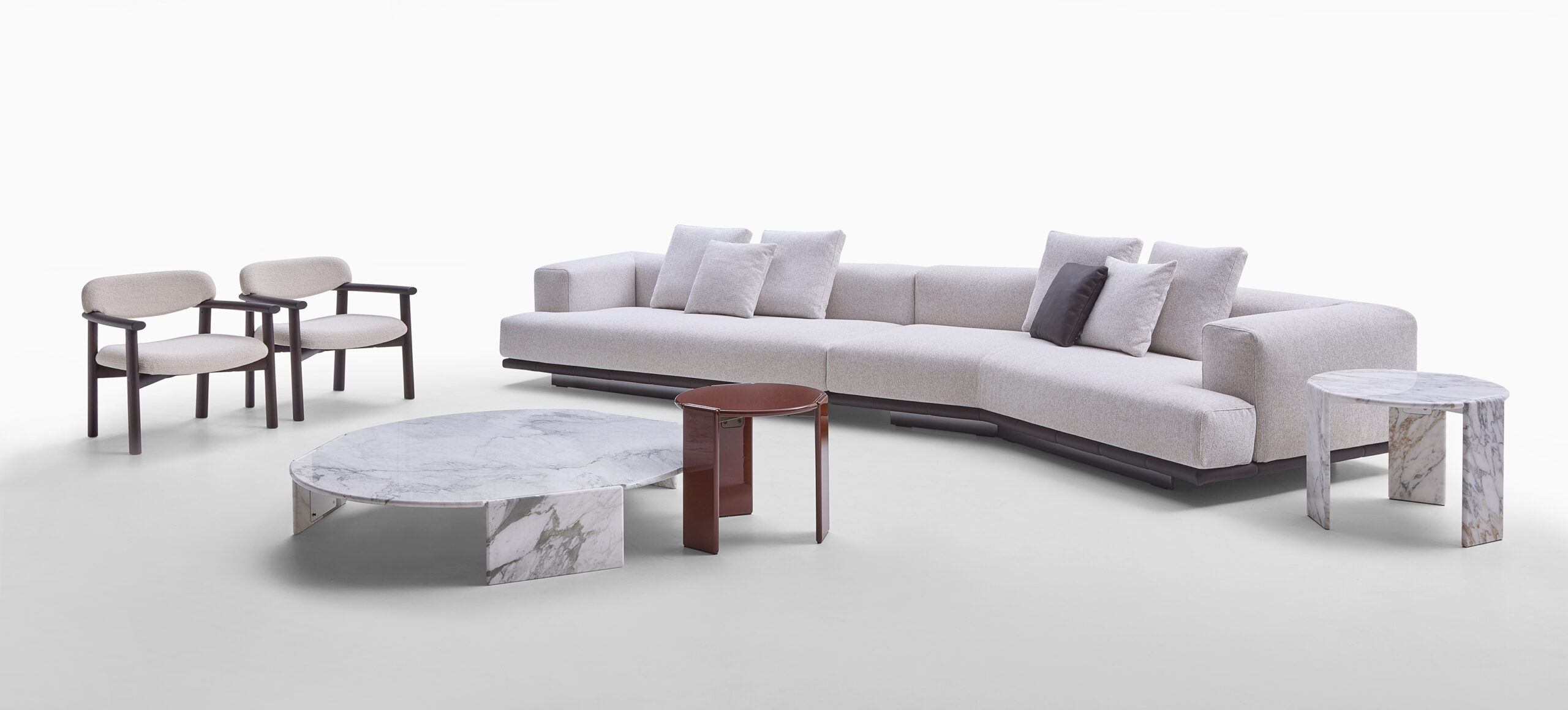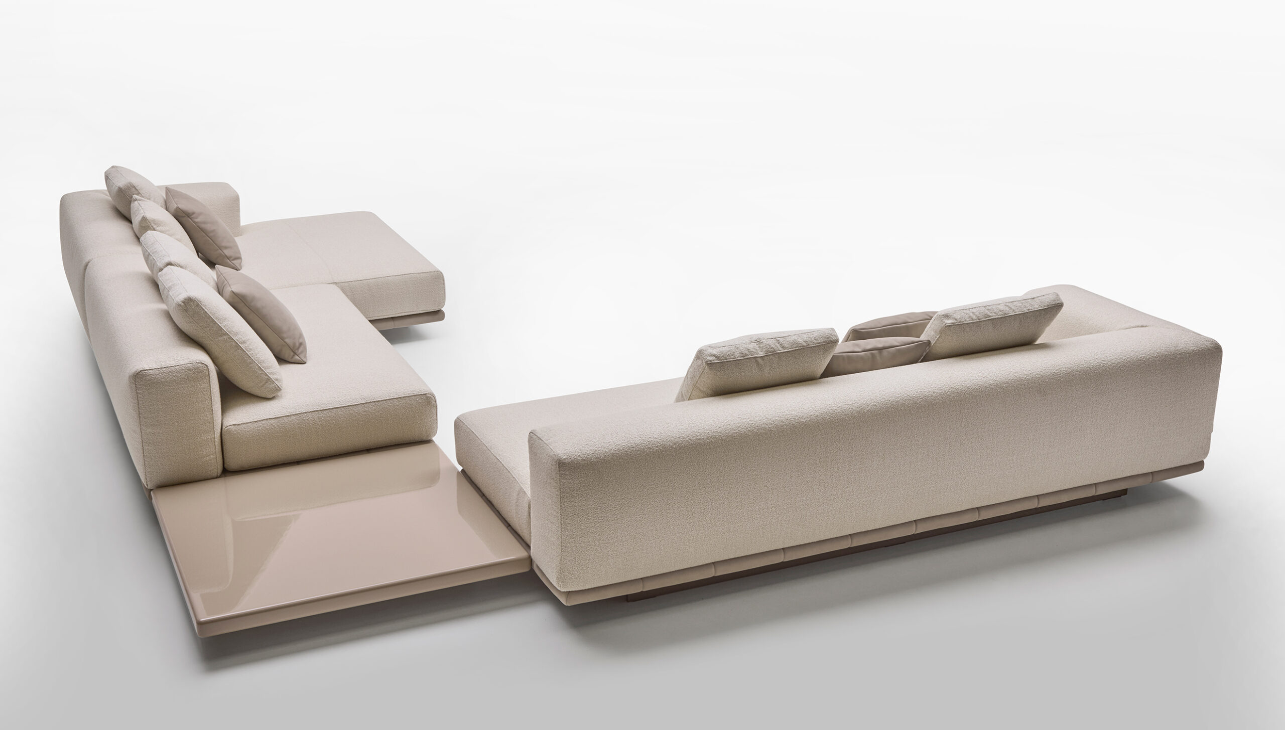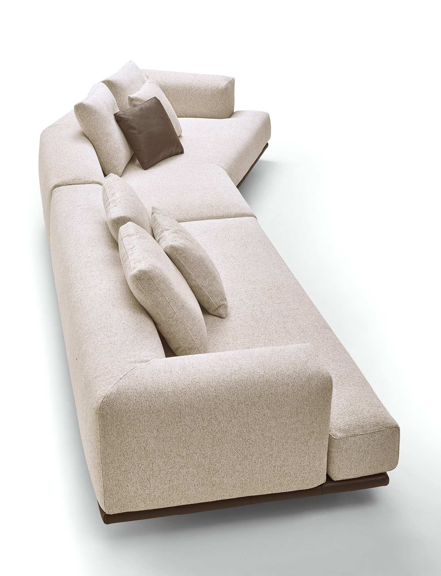 Grazie alla modularità degli elementi, Jonah consente di creare configurazioni personalizzate: composizioni lineari, angolari o a isola, adattandosi con naturalezza a diversi contesti abitativi.