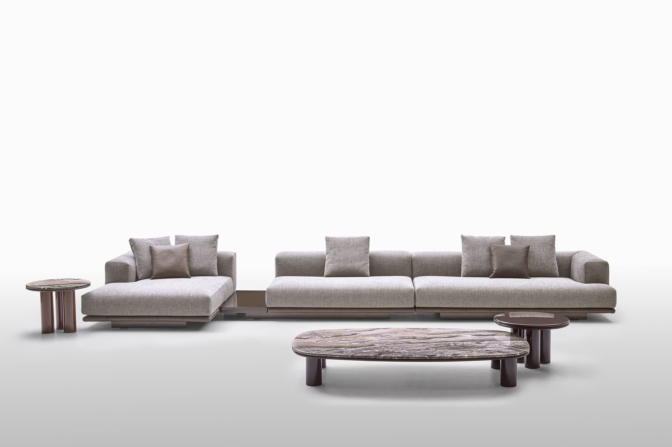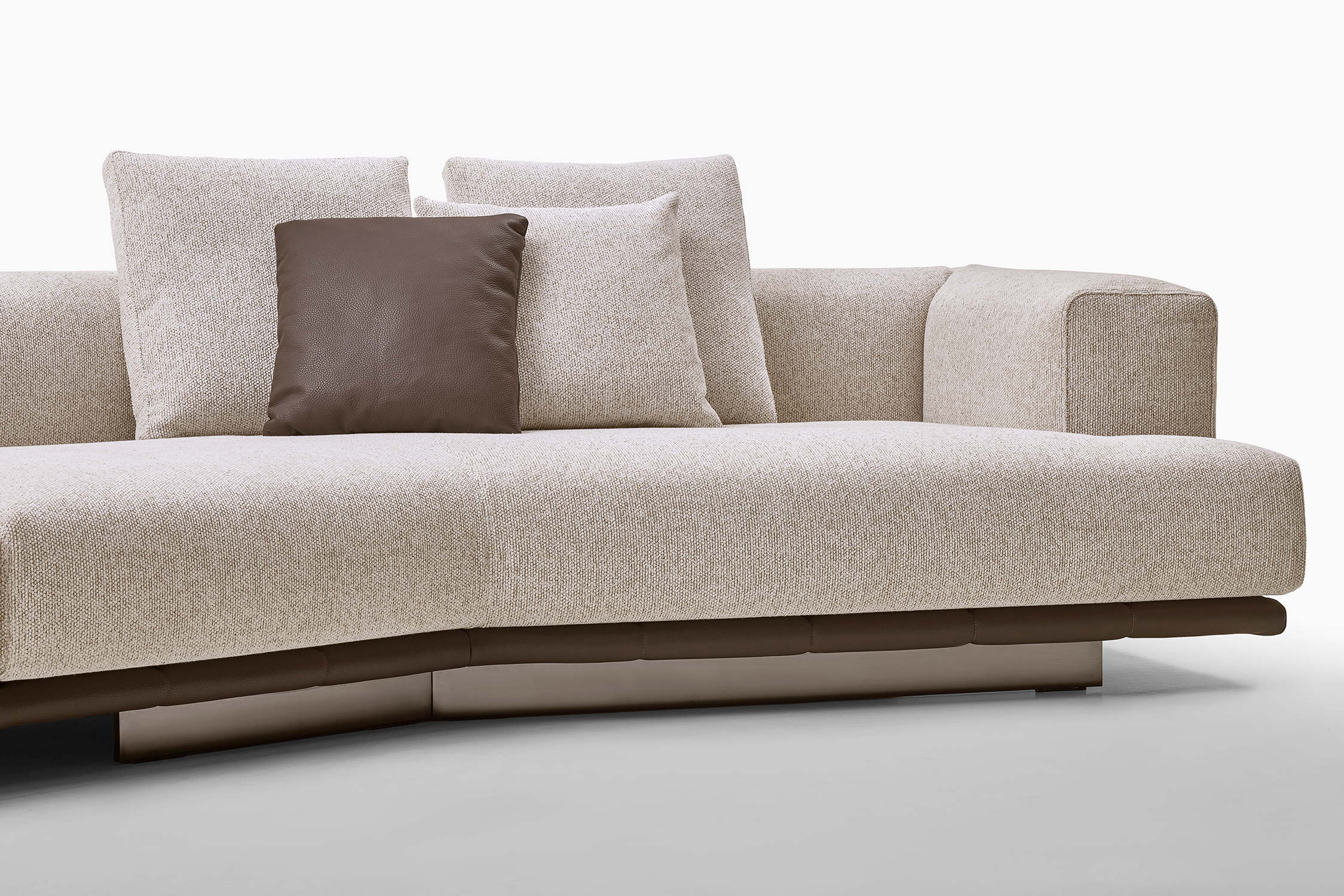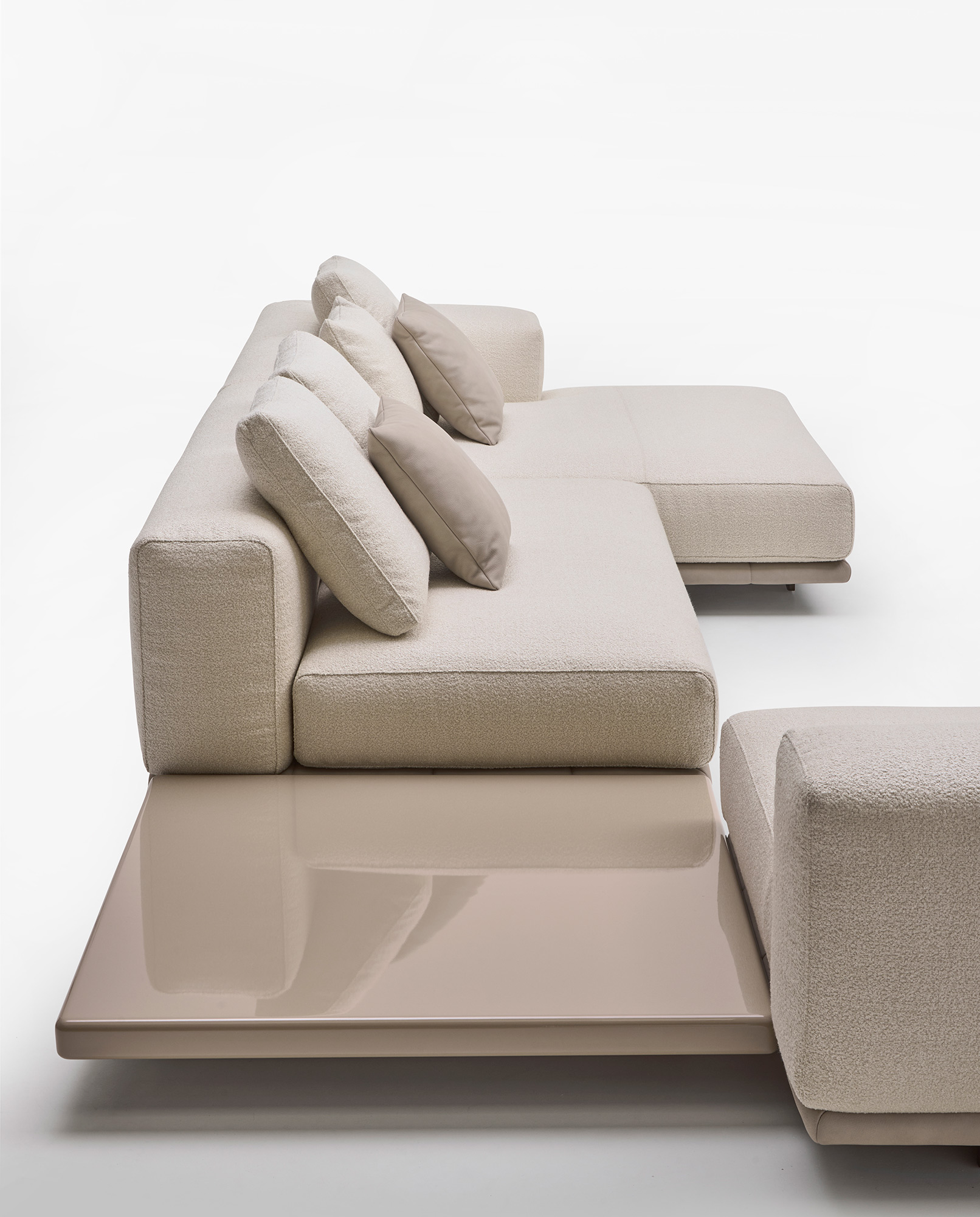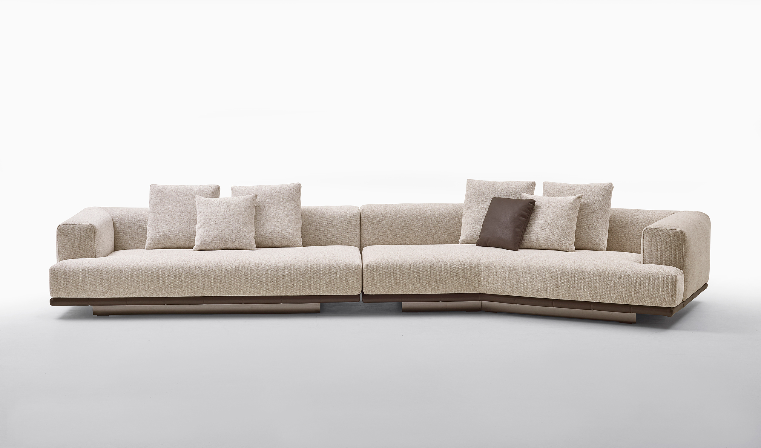 Grazie alla modularità degli elementi, Jonah consente di creare configurazioni personalizzate: composizioni lineari, angolari o a isola, adattandosi con naturalezza a diversi contesti abitativi.