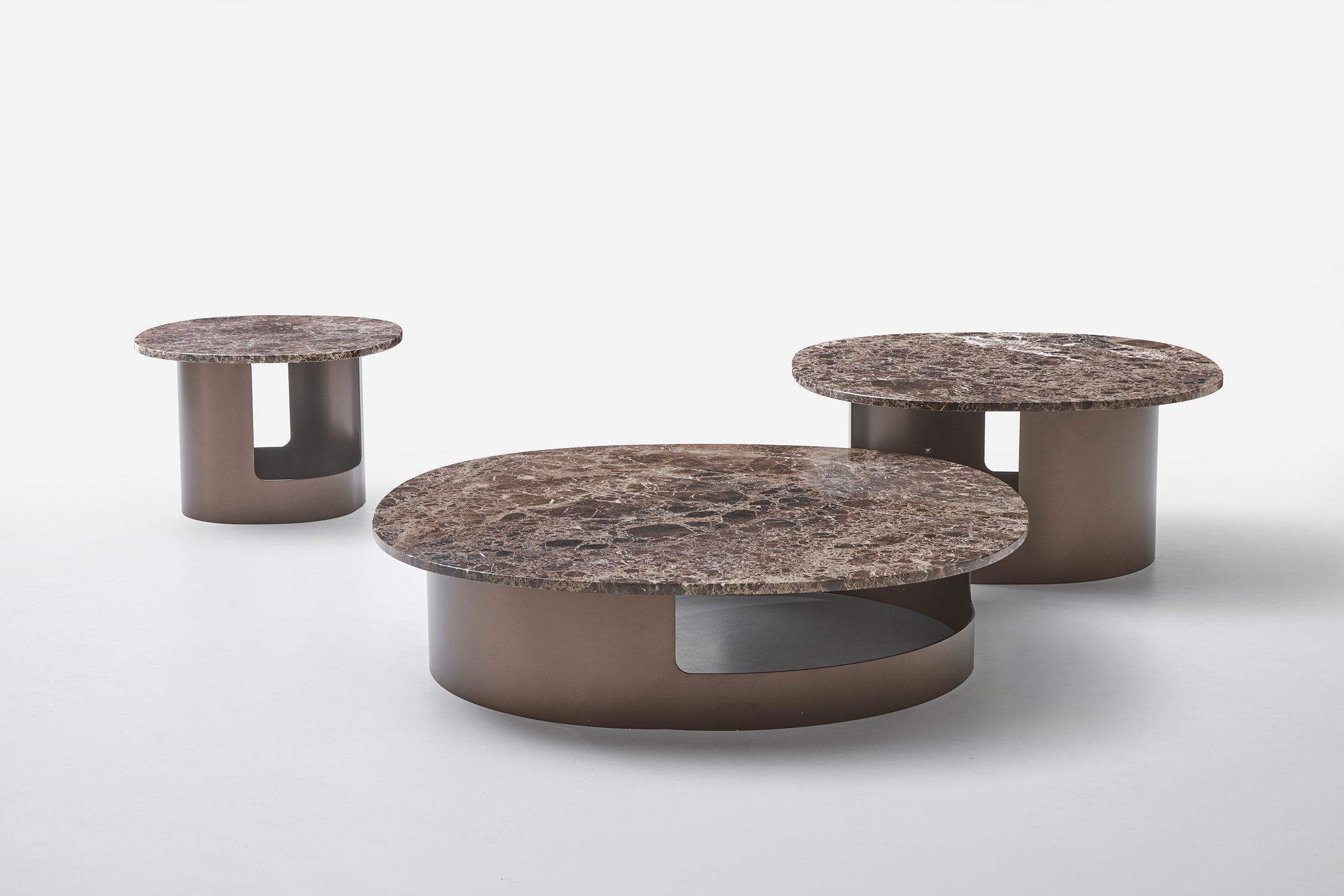Il principale elemento distintivo di Kofi è la sua struttura, costituita da una lamiera di metallo abilmente piegata, che quasi assume la forma di un elegante cilindro. Questa particolare configurazione conferisce ai tavolini un senso di leggerezza e fluidità, creando un’atmosfera di modernità e stile.