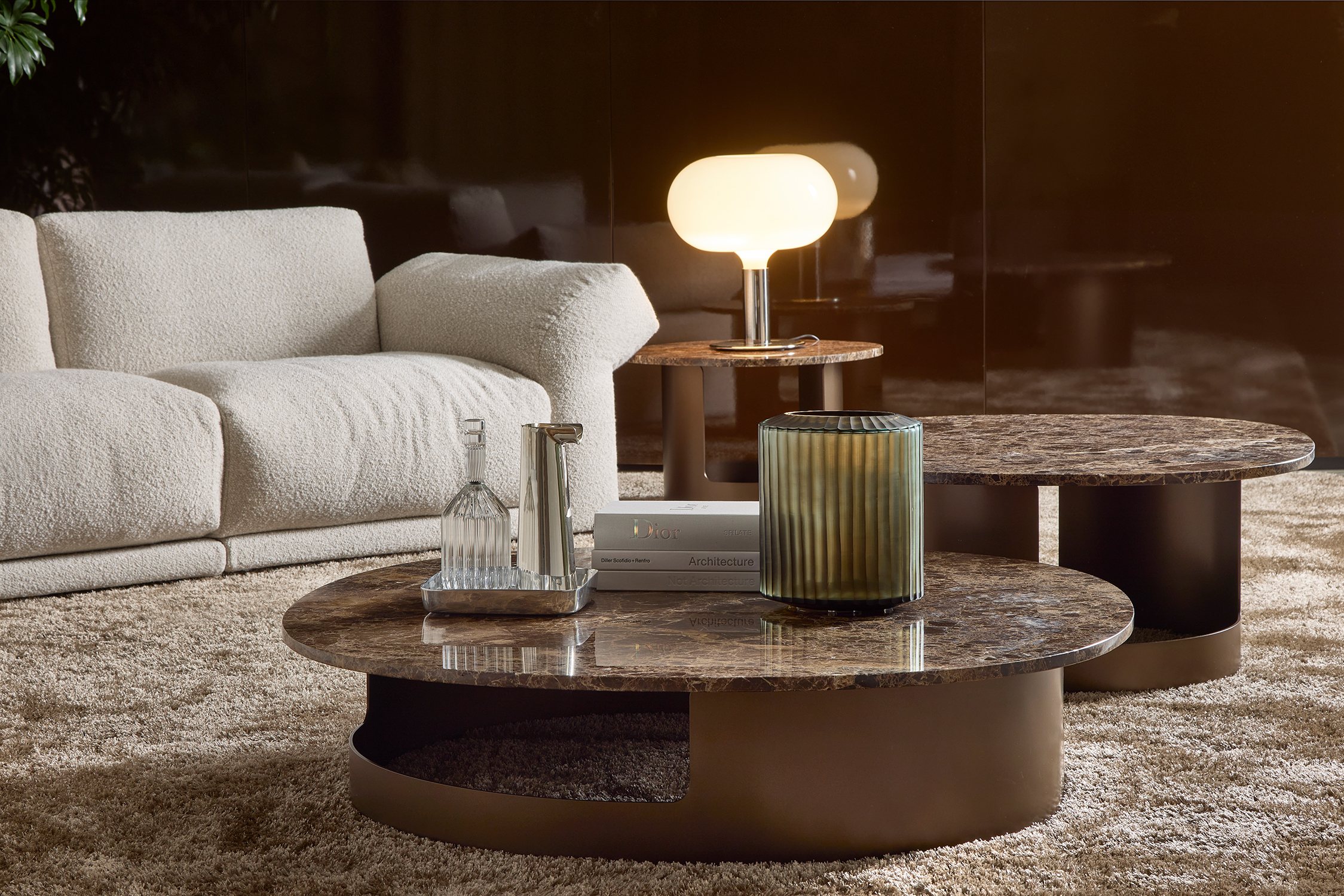 I tavolini Kofi sono stati pensati con particolare attenzione per gli ambienti contract, come hotel e lobby, dove la loro presenza può valorizzare gli spazi e offrire un punto focale di design. Tuttavia, grazie alla loro versatilità e al loro appeal estetico, si adattano perfettamente anche a salotti residenziali, aggiungendo un tocco di eleganza e raffinatezza.