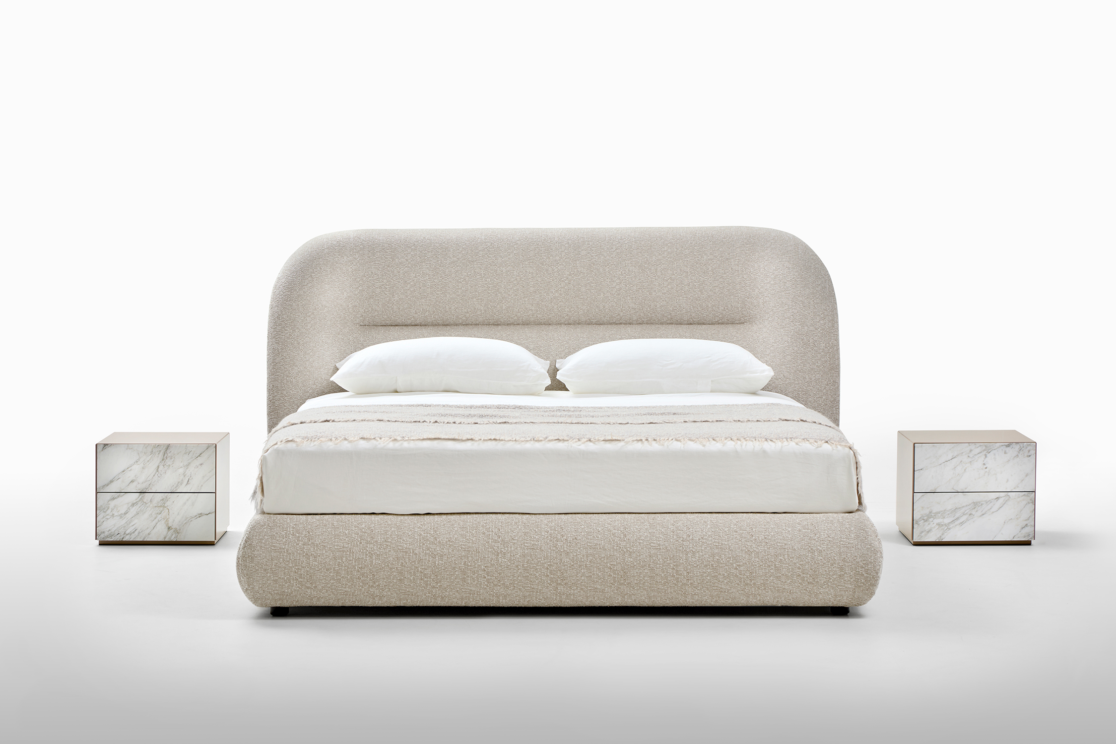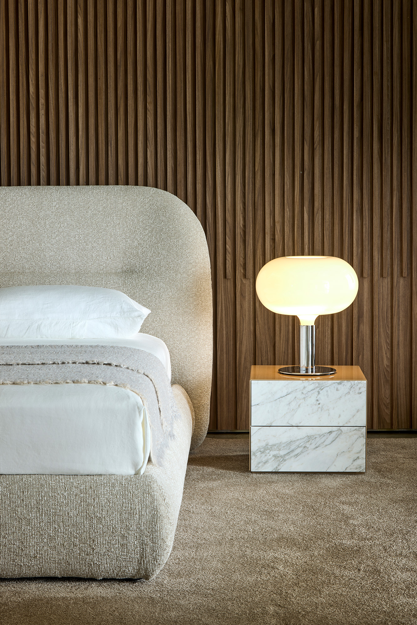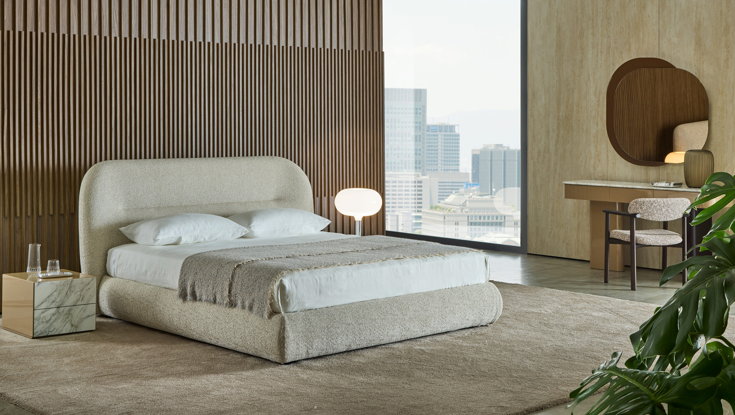 Il letto Noah è stato ispirato dalle linee curve, sinuose e avvolgenti dello schienale del divano omonimo, creando un design che richiama il fascino organico degli anni Settanta. Questo letto trasforma qualsiasi spazio in un ambiente caldo e familiare, offrendo una piacevole sensazione di comfort domestico. Le sue linee distintive conferiscono alla testata una forte personalità, rendendolo adatto non solo per ambienti residenziali, ma anche per utilizzi contract, come hotel di lusso, offrendo agli ospiti un’esperienza di sonno e riposo di alta qualità.