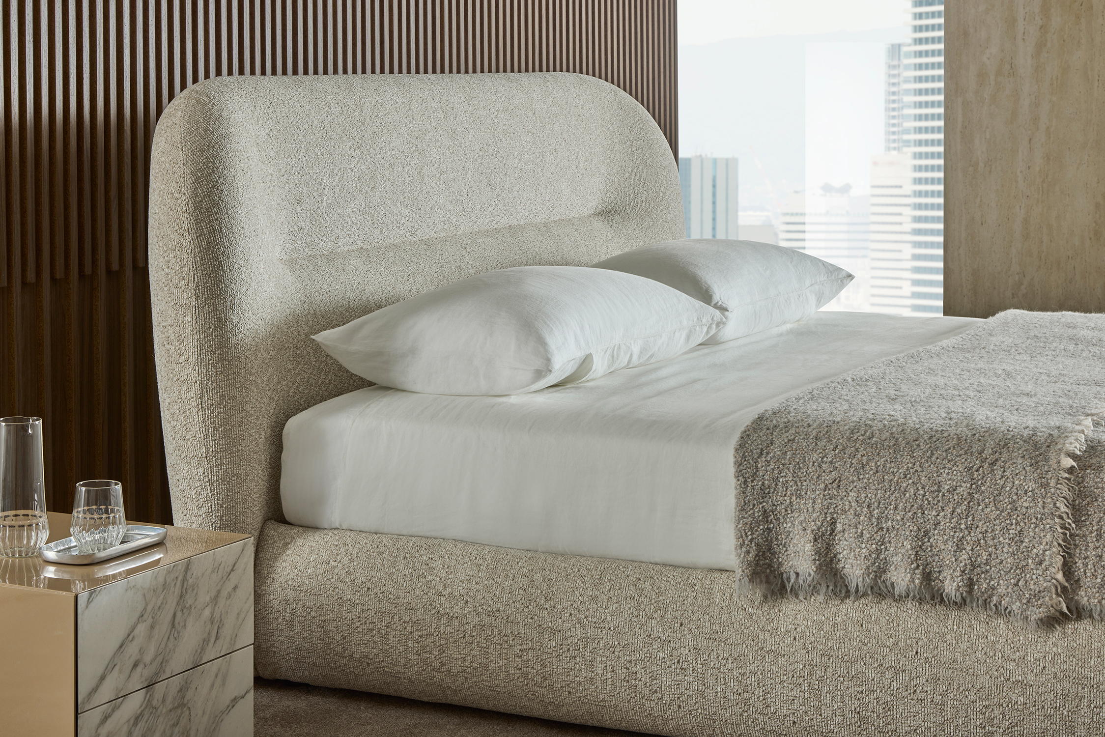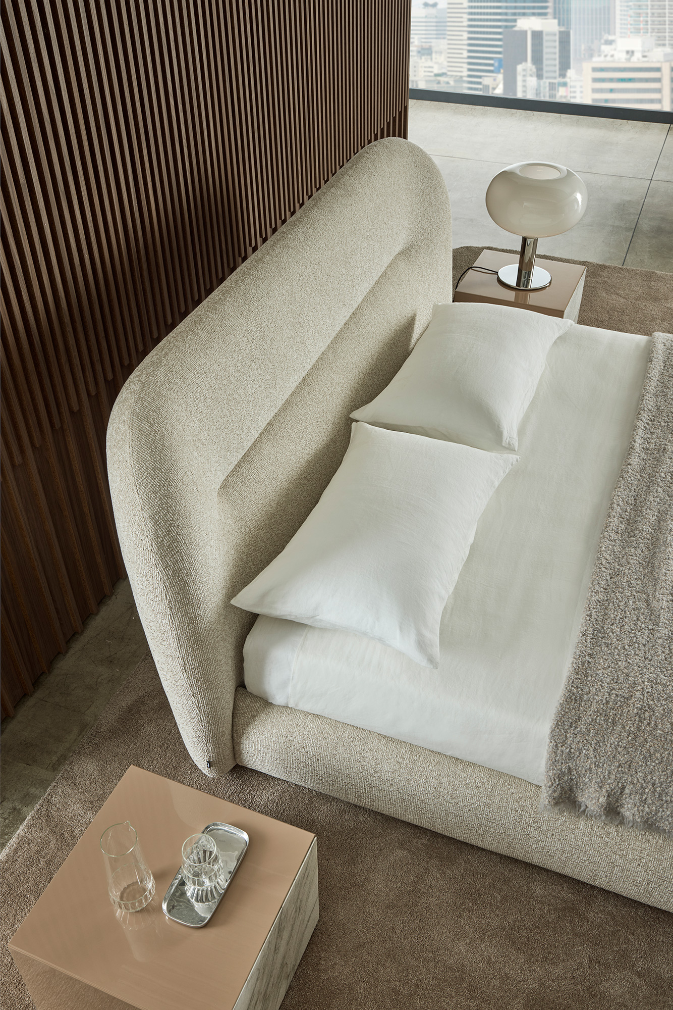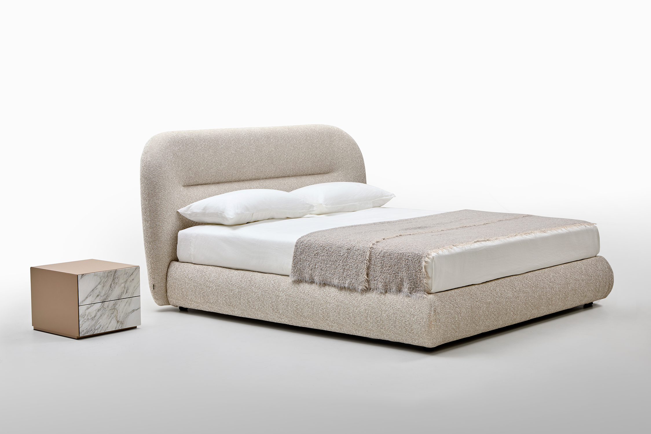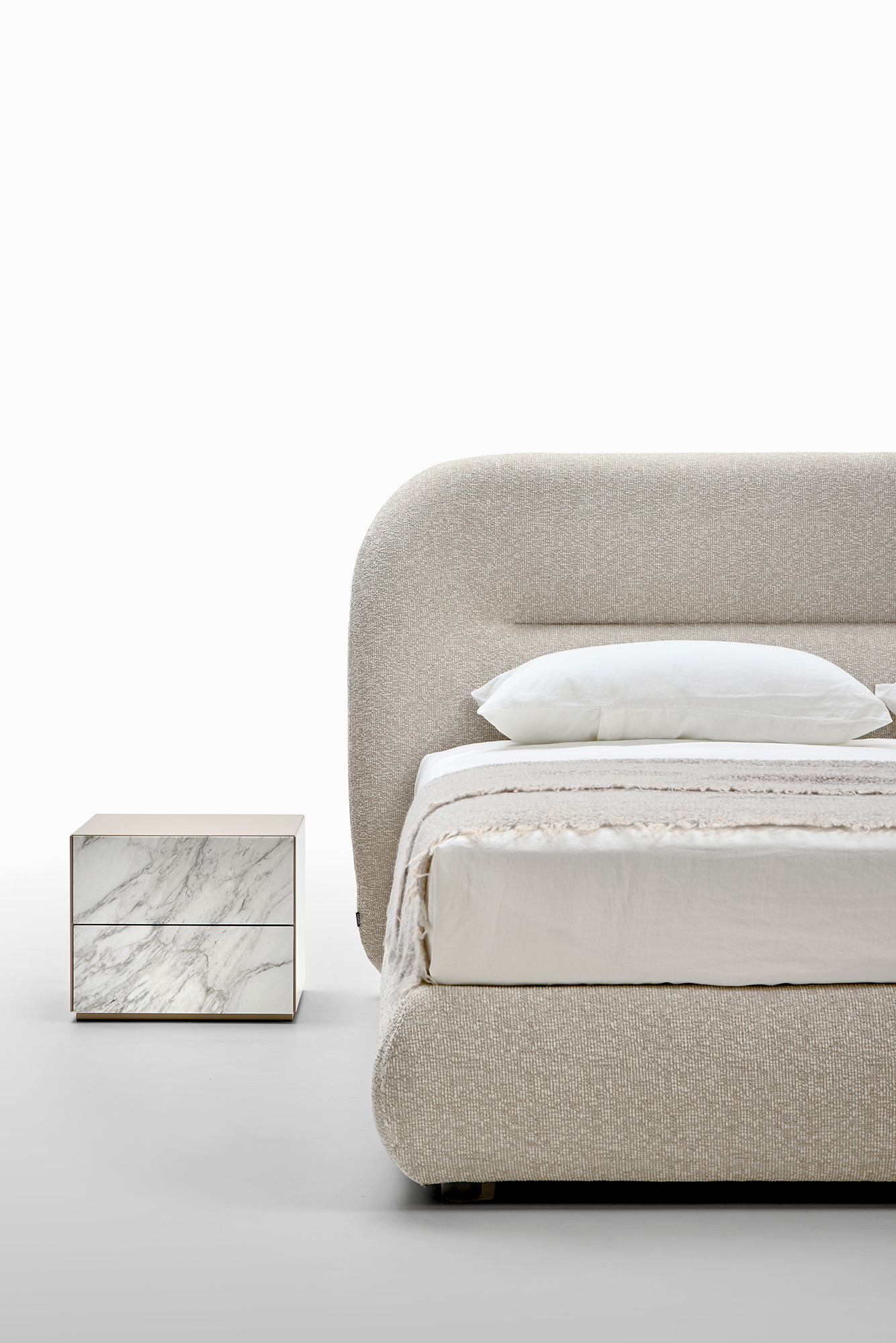 Il letto Noah è stato ispirato dalle linee curve, sinuose e avvolgenti dello schienale del divano omonimo, creando un design che richiama il fascino organico degli anni Settanta. Questo letto trasforma qualsiasi spazio in un ambiente caldo e familiare, offrendo una piacevole sensazione di comfort domestico. Le sue linee distintive conferiscono alla testata una forte personalità, rendendolo adatto non solo per ambienti residenziali, ma anche per utilizzi contract, come hotel di lusso, offrendo agli ospiti un’esperienza di sonno e riposo di alta qualità.