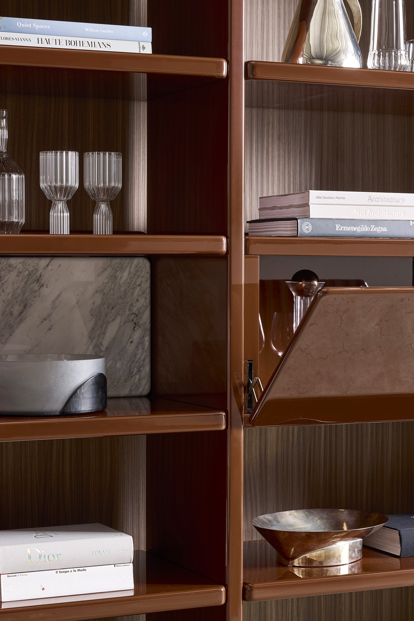 Pierre nasce come una collezione di arredi dal carattere deciso, pensata per definire lo spazio con un linguaggio essenziale e contemporaneo. Librerie, madie, cassettiere, mobili bar e comodini condividono una stessa visione progettuale: un equilibrio rigoroso tra forma e materia, ispirato all’estetica radicale e sofisticata degli anni ’80.