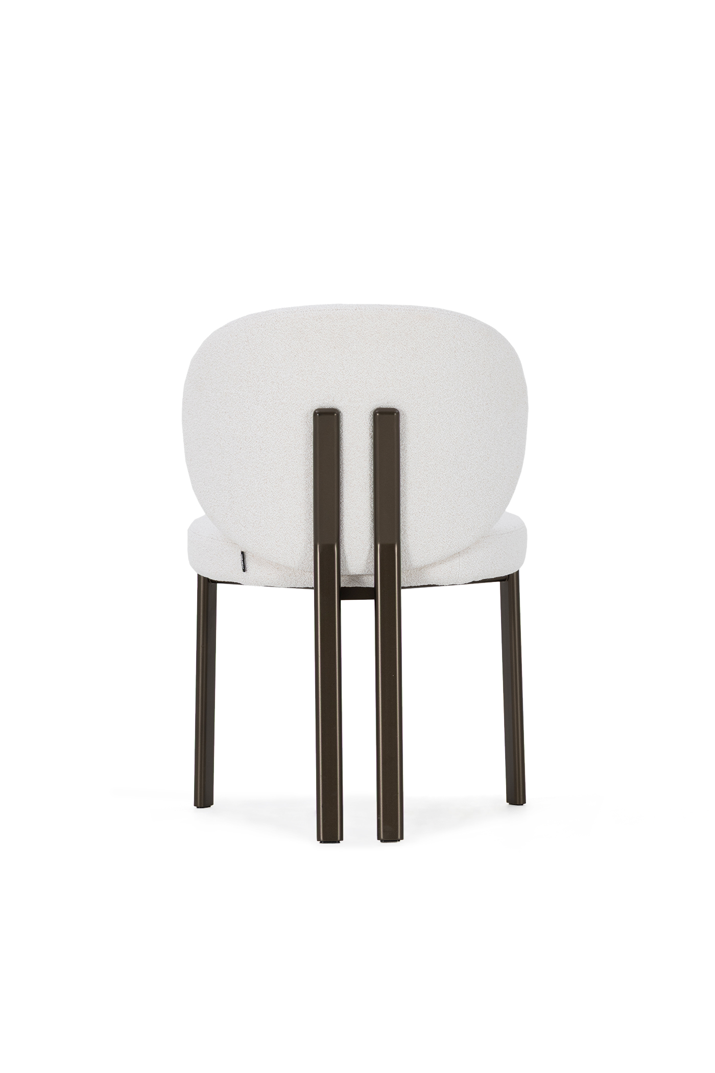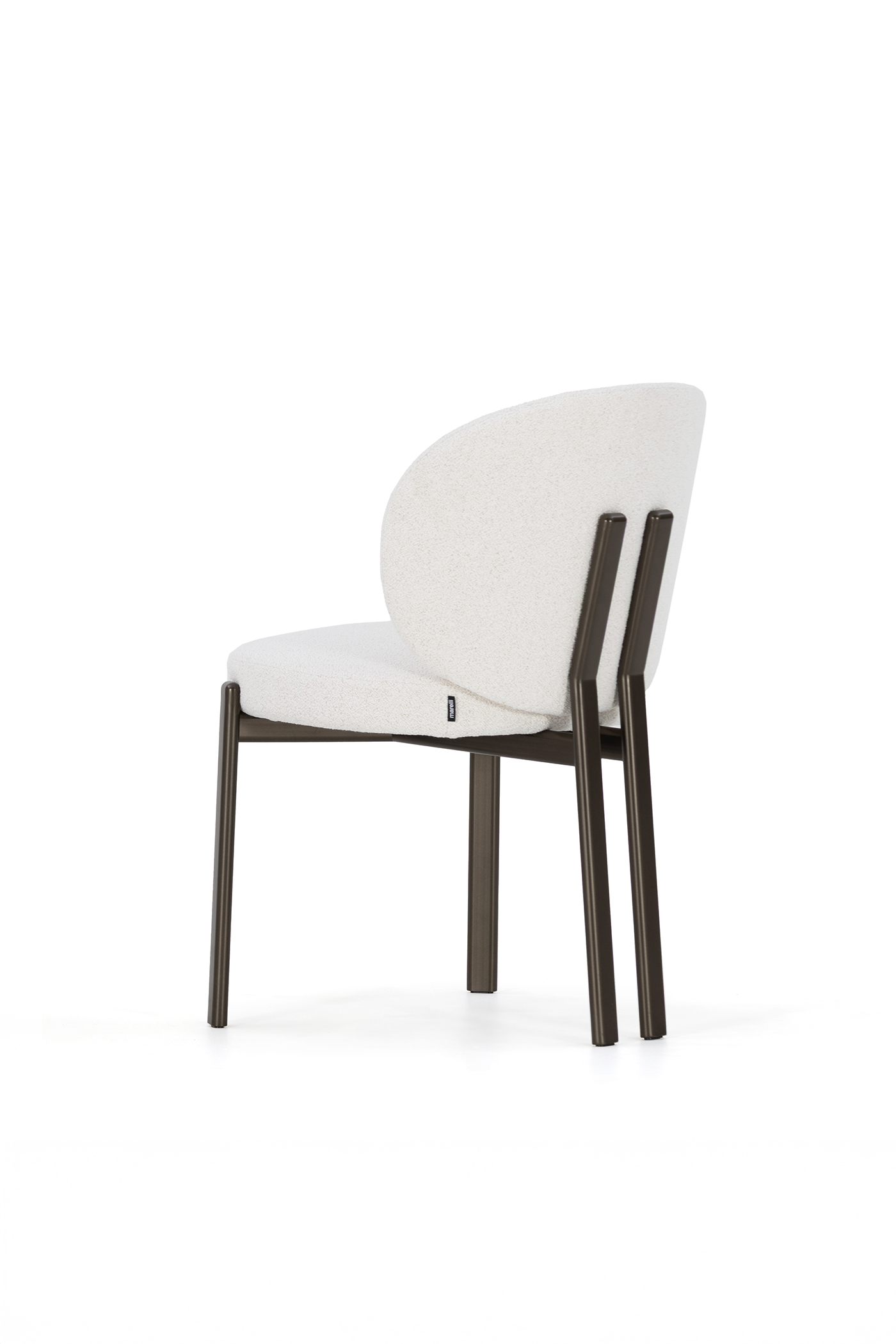Clara’s distinctive detail lies in its metal legs: a unique design in which the front legs are positioned at the sides and then harmoniously converge towards the centre at the back. This feature gives the chair a light and dynamic appearance, perfect for modern and elegant environments.