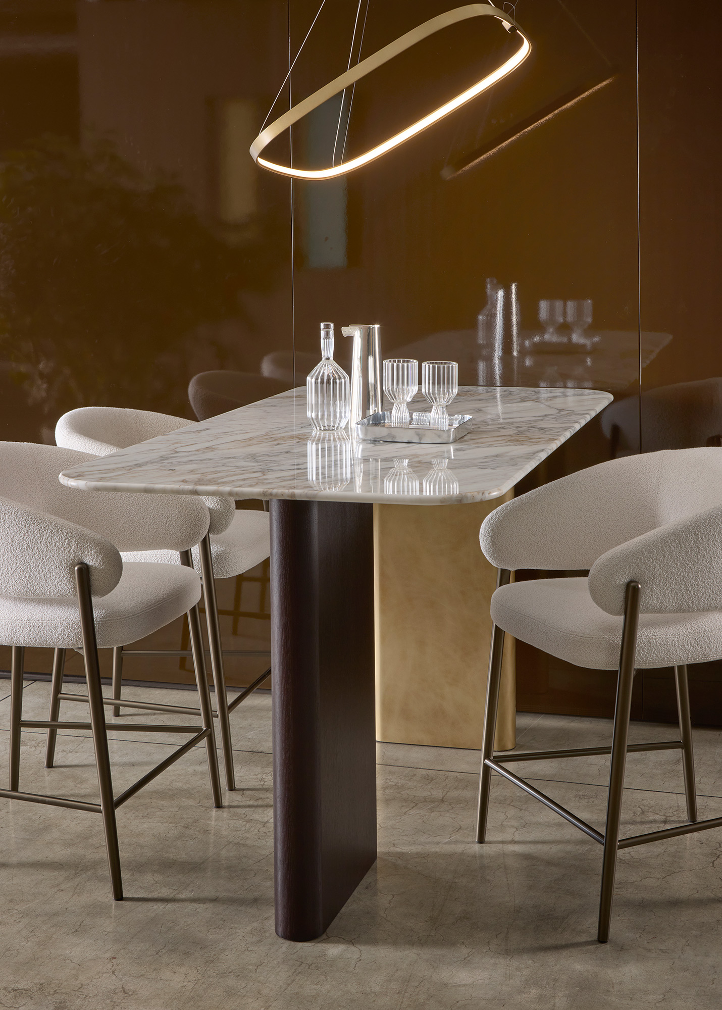 La versatilità della famiglia Onno è ulteriormente enfatizzata dalla possibilità di realizzare i tavoli su misura. Le basi possono essere adattate e interpretate in base alla forma e alle dimensioni del piano, permettendo proposte personalizzate e di grande rilevanza estetica.