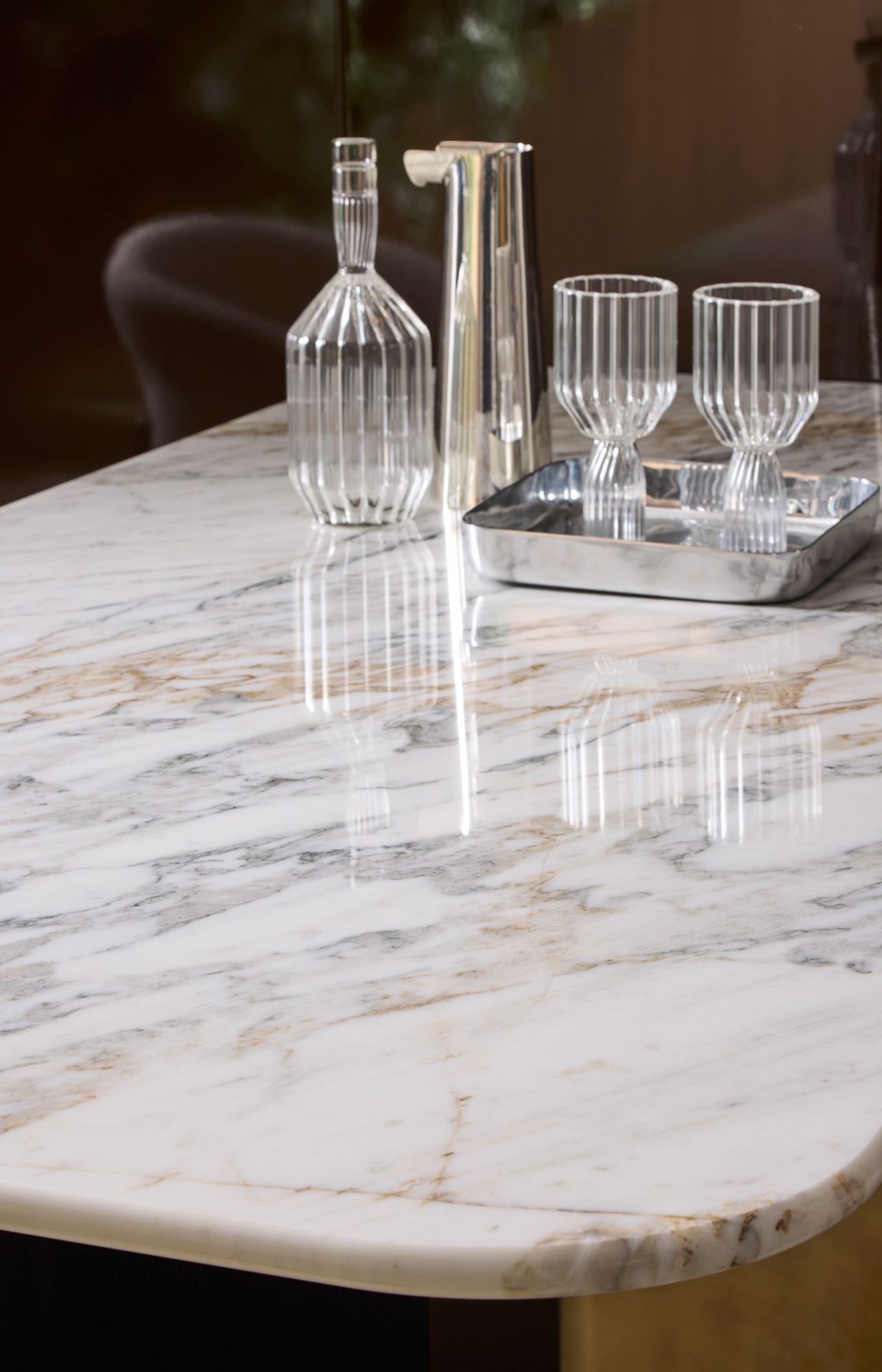 I piani dei tavoli sono disponibili in 16 diverse tipologie di marmo, che possono essere di forma rettangolare, quadrata o tonda, offrendo una varietà di opzioni per adattarsi ai gusti e allo stile dell’ambiente circostante.
